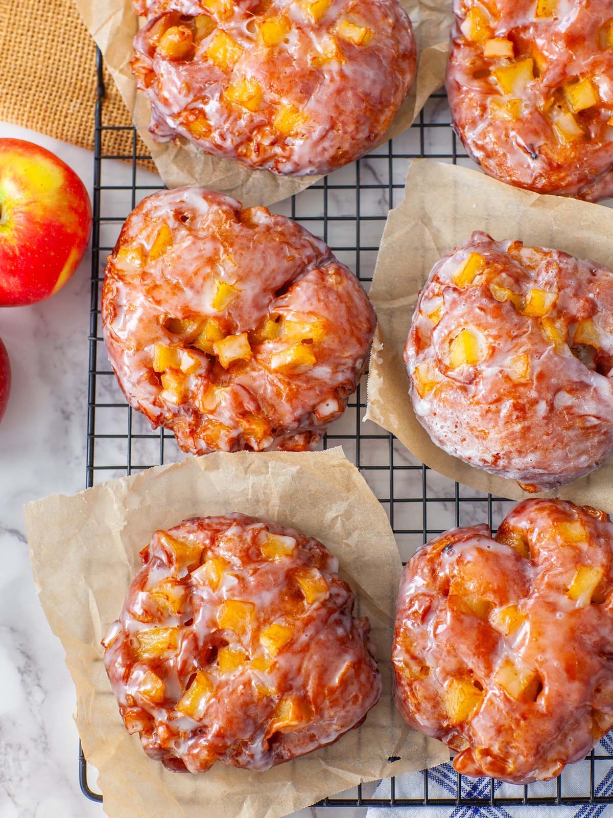 Placki jabłkowe to rodzaj ciasta sporządzanego ze słodkiego ciasta zmieszanego z kawałkami jabłek, które następnie smaży się na złoty kolor. Zwykle są polewane mieszanką cukru cynamonowego lub polewane słodką polewą. Wyobraź sobie, że wgryzasz się w chrupiącą skórkę, która ustępuje miejsca miękkiemu, wypełnionemu jabłkami centrum – czysta rozkosz!